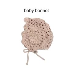 手編み桜色ベビーボンネット ヘッドドレス コットン100% 1〜12ヶ月