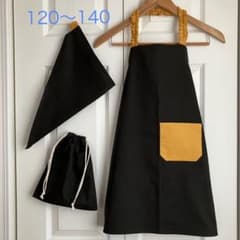 キッズエプロン 100cm〜120cm 三角巾 巾着袋 3点セット