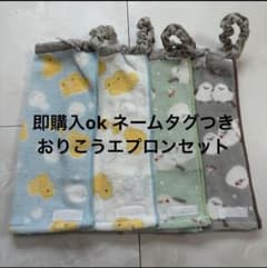 うさぎ ペンギン柄 おりこうエプロン おりこうタオル お食事 保育園 スタイ