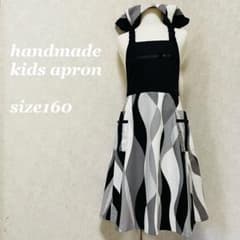 ハンドメイド キッズエプロン三角巾エプロン袋 ウェーブ柄 160サイズ 女の子