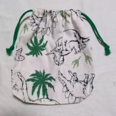 ダイナソー柄(生成)の巾着袋