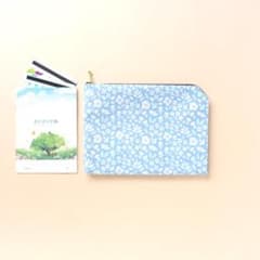 母子手帳ケースM*水色小花 GoodWindyDay*B6サイズ ラミネート生地
