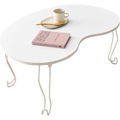 Roomnhome Roomnhome×リコメン堂 テーブル 折りたたみ ビーンズテーブル 折れ脚 軽い 70cm幅 楕円 韓国インテリア コンパクト インテリア カワイイ シンプル 折り畳み スチール脚 センターテーブル (ビーンズホワイト)