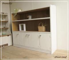 サイズ、デザインオーダー可●超ワイド4枚扉キャビネット●シャビーブラウン受注製作