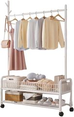 収納ラック 大容量 フック付き 棚付き 多機能収納 パイプハンガー 頑丈 コート掛け キャスター付き 洋服ラック 高耐荷重 衣類収納 組立簡単 (ホワイト単層 ハンガーラック - Bivoyud 60)