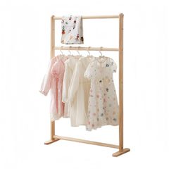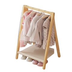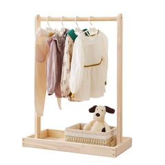 (ナチュラル60*26*60cm) Apaeofl子供用木製ハンガー、子供服やペットの服を収納できます。無垢材、キャスター付き、棚付き、家庭用ベビーフロア収納ラック、シンプルでスタイリッシュ、子供部屋、寝室、幼稚園のギフトに適しています。