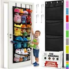 - ドア越しオーガナイザー スタッフィー ぬいぐるみ収納 ベビーアクセサリー おもちゃのぬいぐるみ収納/簡単な取り付け Honeyera(ハネラ) 吊り下げ式収納ポケット付き (黒)