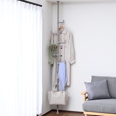 新商品 (実用新案取得済) 幅32×奥行32×高さ190-260cm ワンタッチ突っ張り コートハンガー 全体耐荷重30kg 玄関収納 ポールハンガー 一人暮らし 子供部屋 ラック 組立品 突っ張り マットグレージュ 山善(YAMAZEN) WJ-725RM(