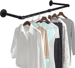 ハンガーラック 壁付け アイアン おしゃれ ハンガーパイプ DIY ハンガーパイプ 天井 多目的吊り棒 奥行き28cm x 室内物干しスタンド 幅92.5 吊り下げ 洗濯物干しハンガー ハンガーバー 壁掛け (ブラック) BQKOZFIN