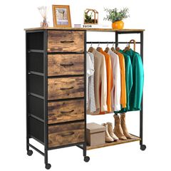 サイズ クローゼット 衣装 衣類 洋服掛け パイプハンガー 洋服収納 幅80奥行40高さ188cm 収納付き 棚板可動式 キャスター付き 全体耐荷重200kg 頑丈 (ダークブラウン) 大容量 引き出し付き ワードローブ ハンガーラック LunarLight