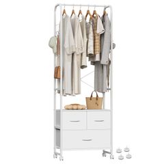 【在庫セール】コンパクト サイズ幅60奥行29高さ175㎝ 引き出し付き ストッパー付きキャスター おしゃれ 収納チェスト 収納棚 クローゼット 収納ケース デッドスペース 隙間収納 タンス 耐震転倒防止(真っ白) チェスト ハンガーラック LunarLigh