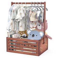 ベビー ハンガーラック ミニ フットパターン 収納ボックス 調節可能ハンガー 省スペース 衣類収納 低め 竹製 可愛い 赤ちゃん用 ペット用 犬用 猫用 人形服 ペット服ラック 組み立て簡単 飾り箱 幅40cm×奥行28cm×高さ55cm (ナチュラル, 0