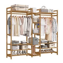 クローゼット ワードローブ コートハンガー オープンラック 天然竹製 棚付き 衣類収納棚 洋服ラック ハンガーラック 洋服掛け 収納ラック 大容量 PASRLD 頑丈 (A/170*30*150cm)