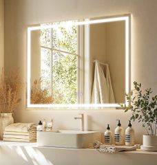 ミルオ君の鏡工房 LEDミラー 直角 ウォールミラー 浴室化粧鏡 バスルーム 壁掛け ドレッサー 洗面所 洗面台 省エネ 明るさ調整 曇り防止 防水加工 飛散防止 60x40cm 横掛け内蔵ライト
