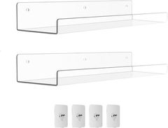 Aurenne ウォールシェルフ 壁掛けラック 棚 賃貸 飾り棚 ディスプレイ 収納 アクリル棚 落下防止 クリア 粘着プレート 2個セット (クリア, 幅30cm x 奥行10cm x 高さ4cm)
