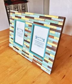 ◆リサイクルウッド◆ 多色ストライプ フォトフレーム