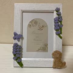トイプードルと花と蝶のフェルト装飾フォトフレーム Lサイズ