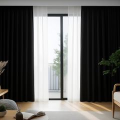 遮音 断熱 防音 防寒 99%以上遮光 ドレープカーテン 遮光1級 小窓用 UVカット - 昼夜目隠し 2枚組 子供部屋 幅100cm×丈135cm 寝室 カーテン リビング用,ブラック