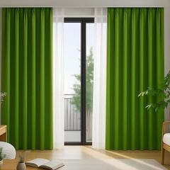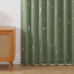 リビング 寝室用 省エネ フック付き グリーン 2枚組 目隠し 110cm丈 遮光カーテン 箔プリント 防音 星柄 断熱 遮光 間仕切り カーテン Topfinel