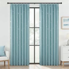 箔プリント 星柄 遮光カーテン 110cm丈 断熱 2枚組 ブルー 遮光 フック付き 寝室用 リビング カーテン 省エネ 目隠し Topfinel 防音 間仕切り