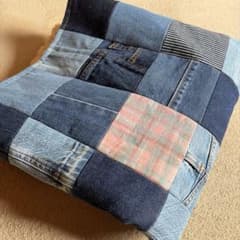 デニムリメイクブランケット膝掛けマルチカバーポコポコ