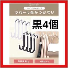 ドアハンガー 黒 4個セット ドアフック ロング 滑り止め付き 収納用品