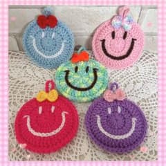 ♡カラフル❤︎ニコちゃん エコたわし 5個♥️手編み アクリルたわし♡