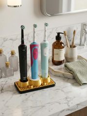 ブラウン オーラルB等対応 電動歯ブラシ&替えブラシ収納スタンド 洗面所をホテルライクに。分解して洗える!3Dプリント製 ブラック×ゴールド