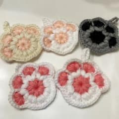 肉球デザイン アクリルたわし 5枚セット 猫 犬 小動物