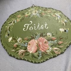 トイレットサイン 花柄 緑色手描きトールペイント13X9.5