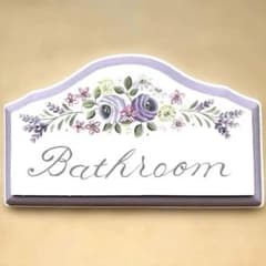 手描きバスルームプレート ドアプレート可憐なラベンダーとローズ トールペイント