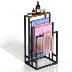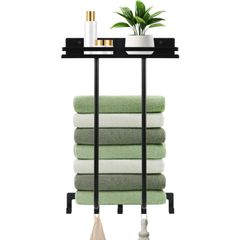 上 ラック 2段 タオル掛け ブラック 約W18×D12.5×H34cm タワー tower 山崎実業(Yamazaki) タオルバーに差し込むだけ 簡単設置 6626