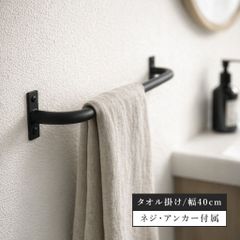 アイアン タオルホルダー 40cm 壁付け ねじ固定 ブラック ホワイト タオルハンガー スチール製 ネジ付属 アンカー付属 洗面所 トイレ 業務用 便所 TH-40