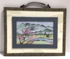 墨彩画 絵画 和服リフォーム額 風景画 山 川 田 桃の木 桃の花 絵 イラスト