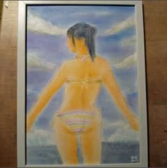 【匿名配送】手描きイラスト 原画「水着女子」 A4サイズ額つき