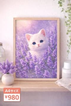 ラベンダー猫 ポスター A4 光沢紙 癒し インテリア