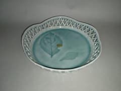 有田焼・手づくり青磁カゴメ菓子鉢24cm・新品未使用