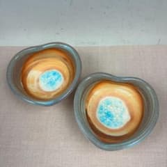 5 うるま陶器 ハート小鉢 2枚セット 沖縄の海 ターコイズ うるまブルー