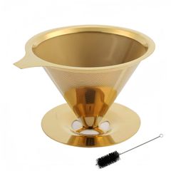 【数量限定】スタンドブラシ付き おしゃれ コーヒー・茶・果汁用 ペーパーレス 再利用可 ゴールドフィルター (ゴールド) 濾過 二層メッシュ 手冲コーヒードリッパー コーヒーフィルター 304ステンレス製