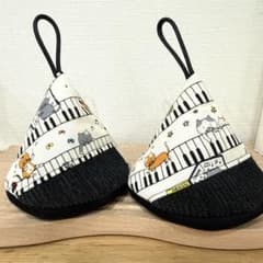猫とピアノ 星柄 三角鍋つかみセット
