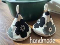 ラスト1点☆ハンドメイド☆三角鍋つかみ☆北欧風花柄ブラック