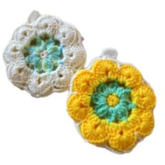 レトロ可愛い♪手編みのコースター2枚セット♥ハンドメイド