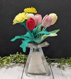 ハンドメイド 立体お花のモチーフ タンポポ、チュ―リップ レ―ス編み