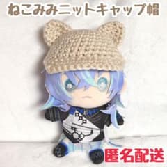 にじぬい ネコ耳キャップ ニット帽 ベージュ ぬい服 ぬい帽子 猫耳 匿名配送