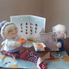 長寿祝い 新聞おじいちゃん みかんおばあちゃん こたつみかん フェルト置物