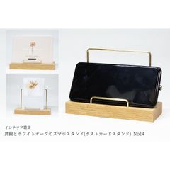 真鍮とホワイトオークのスマホスタンド(ポストカードスタンド) No15