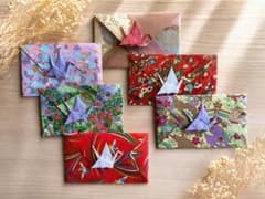 和風ぽち袋 兼 メッセージカード5枚セット 折り紙の鶴付き