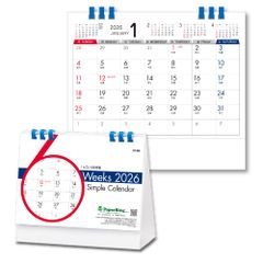 新品 キングコーポレーション 2026年 カレンダー 卓上 6ウィークス シンプルカレンダー 160×180mm KC10025