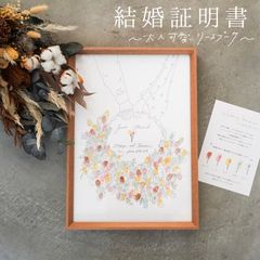 結婚証明書 opheron A4 A3 説明書付 人前式 ゲスト参加型 挙式 誓いの言葉 誓約書 スタンプ 寄せ書き 生花 ドライフラワー 大人数 Wedding ブーケ (A4, リースブーケ)