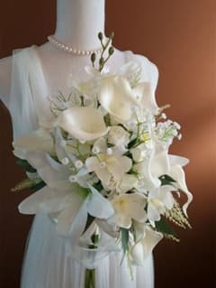 ブライダルブーケ キャスケードブーケ アーティシャルフラワーブーケ